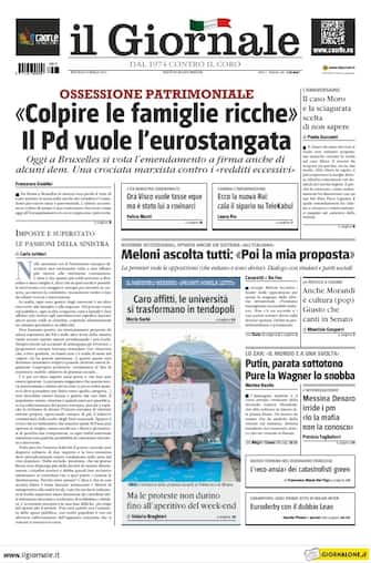 Il Giornale: apertura con titolo "Ossessione patrimoniale: colpire le famiglie ricche. Il Pd vuole l'eurostangata". Spazio a "Meloni ascolta tutti: poi la mia proposta"