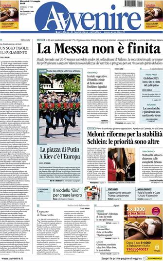 Avvenire: apertura con titolo "La Messa non è finita". Studio prevede: nel 2040 nessun sacerdote Under 30 nella diocesi di Milano. Le vocazioni in calo ovunque. Ma preti giovani e anziani rilanciano la bellezza del servizio e spingono per un rinnovato spirito del dono