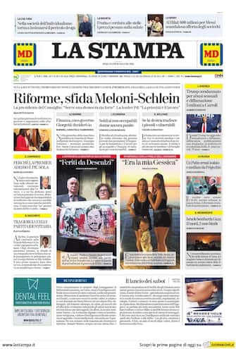 La Stampa: apertura con titolo "Riforme, sfida Meloni-Schlein". La presidente del Consiglio: serve una democrazia forte. La leader del Pd: la priorità è il lavoro