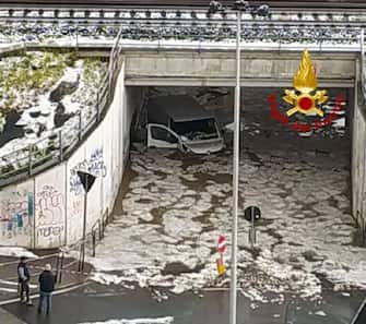 L'episodio è avvenuto in via Lanzi, nel rione del Romito, con i due furgoni rimasti sommersi a causa della perturbazione. Non risultano, comunque, nella circostanza, persone ferite, i conducenti si sarebbero messi in salvo in tempo