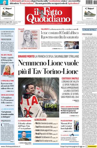 Il Fatto Quotidiano: apertura con titolo "Nemmeno Lione più il Tav Torino-Lione". Binario morto: la Francia si sfila, Salvini&Lobby strillano