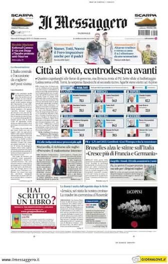 Il Messaggero: apertura con titolo "Città al voto, centrodestra avanti". Quattro capoluoghi alle forze di governo, ma Brescia resta al Pd. Sette sfide al ballottaggio. Latina torna a FdI. Terni, la sorpresa Bandecchi al secondo turno. Sgarbi viene eletto ad Arpino