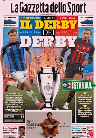 La Gazzetta dello Sport: apertura con titolo "Il derby dei derby". Tutto sulla notte che porta a Istanbul e cambia il futuro. I nerazzurri partono dal 2-0 dell'andata. I rossoneri con Leao per il ribaltone