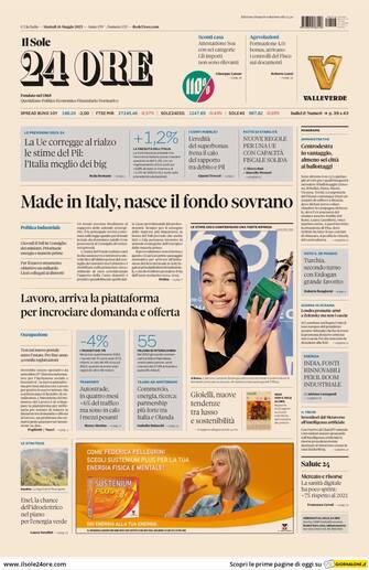 Il Sole 24 Ore: apertura con titolo "Made in Italy, nasce il fondo sovrano". Spazio a "Lavoro, arriva la piattaforma per incrociare domanda e offerta"