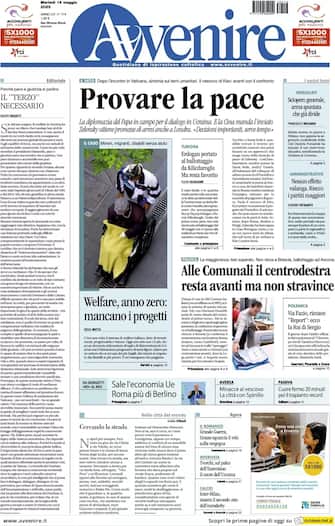 Avvenire: apertura con titolo "Provare la pace". La diplomzia del Papa è in campo per il dialogo in Ucraina. E la Cina manda l'inviato. Zelensky ottiene promesse di armi anche a Londra: "Decisioni importanti, serve tempo"