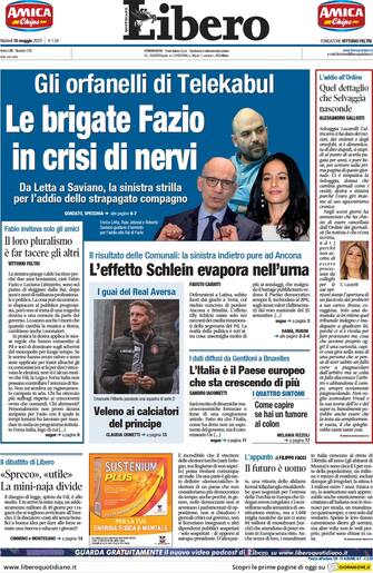 Libero: apertura con titolo "Gli orfanelli di Telekabul: le brigate Fazio in crisi di nervi". Da Letta a Saviano, la sinistra strilla per l'addio dello strapagato compagno