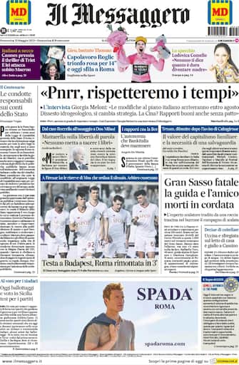 Il Messaggero oggi apre con un'intervista alla premier Giorgia Meloni che sul Pnrr afferma: “Rispetteremo i tempi”. Nella fotografica, invece, lo sport con la Roma confitta dalla Fiorentina