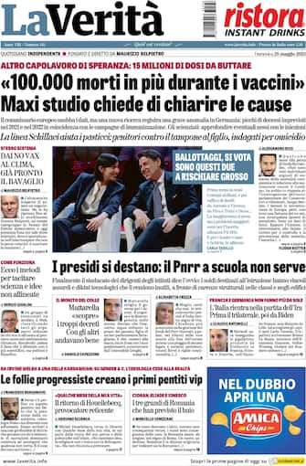 La Verità apre il giornale sui vaccini Covid con 15milioni di dosi da buttare e una ricerca che afferma: “100.000 morti in più durante i vaccini, maxi studio chiede di chiarire le cause”