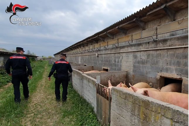 Nel corso del sopralluogo nell'azienda bresciana i forestali hanno trovato "un deposito incontrollato di rifiuti pericolosi costituiti da lastre in fibrocemento e farmaci veterinari scaduti" si legge nel comuncato dell'Arma. Oltre ad una multa di 25 mila euro all'allevatore di suini è stato emesso un provvedimento di divieto di introduzione di nuovi animali ed è stata disposta la limitazione all'immissione in commercio dei restanti maiali che avverrà soltanto dietro un'autorizzazione veterinaria. Nel frattempo, la Procura di Brescia ha aperto un fascicolo per definire eventuali responsabilità penali.
