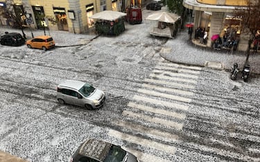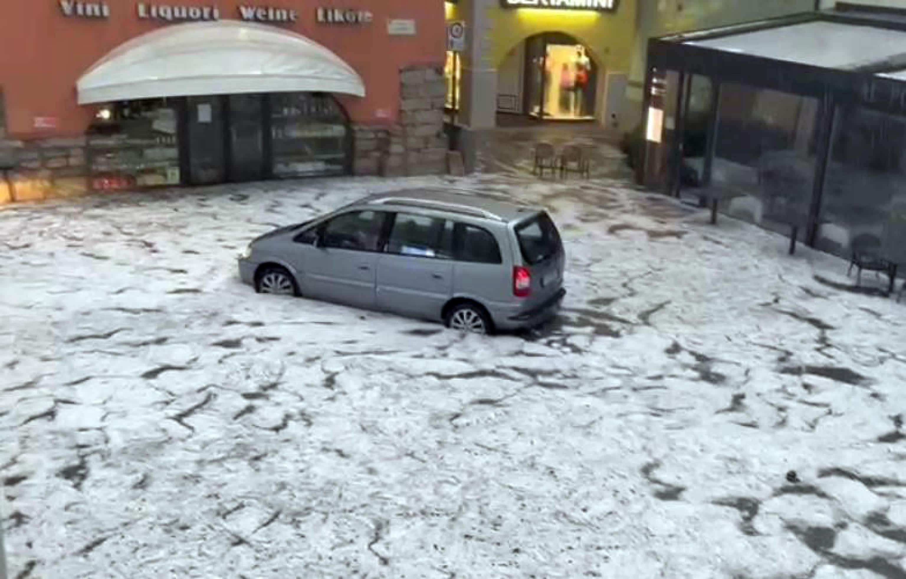 Il sindaco: “La piazza è stata sommersa da centimetri di grandine e ghiaccio”. Allagamenti e disagi alla circolazione