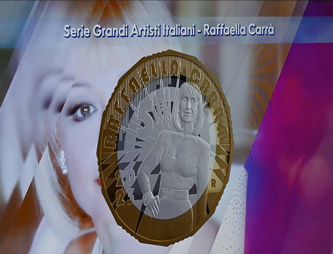 Come per le edizioni precedenti, l'artista da celebrare è stata scelta con un sondaggio tra i collezionisti registrati al sito e-commerce dell'Istituto Poligrafico e Zecca dello Stato. La moneta bimetallica, dal valore nominale di 5 euro, si presenta in versione proof ( emesse esclusivamente per collezioni numismatiche) con una tiratura di 15.000 pezzi. Realizzata dall'artista incisore Silvia Petrassi e prodotta dalle Officine della Zecca italiana raffigura sul dritto, dentro uno schermo televisivo, il ritratto di Raffaella Carrà.