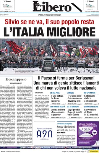 Libero: apertura con titolo "L'Italia migliore". Silvio se ne va, il suo popolo resta. Il Paese si ferma per Berlusconi. Una marea di gente zittisce i lamenti di chi non voleva il lutto nazionale