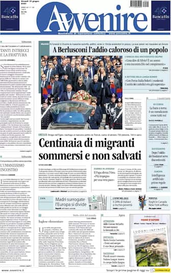 Avvenire: apertura con titolo "Centinaia di migranti sommersi e non salvati". Spazio anche "A Berlusconi l'addio di un popolo"
