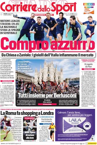 Corriere dello Sport: apertura con titolo "Compro azzurro". Nations League: stasera (20.45) la Nazionale sfida la Spagna in semifinale. Da Chiesa a Zaniolo: i gioielli dell'Italia infiammano il mercato