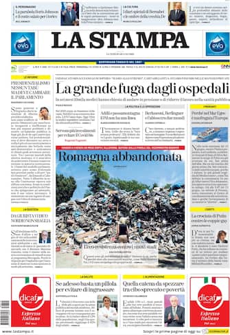 La Stampa: apertura con titolo "La grande fuga dagli ospedali". In sei mesi 10mila medici hanno di chiesto di andare in pensione o di ridurre il lavoro nella sanità pubblica