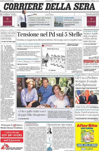 Corriere della Sera: apertura con titolo "Tensione nel Pd sui 5 Stelle". Giustizia, la maggioranza difende la riforma. Ma la Lega: così si compatta l'Anm