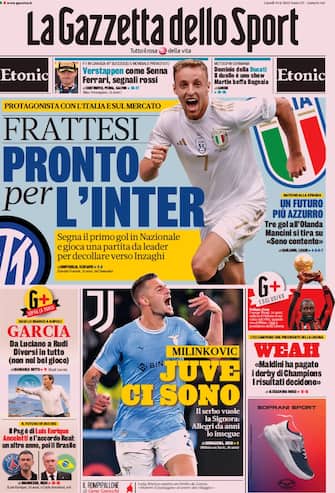 La Gazzetta dello Sport: apertura con titolo "Frattesi pronto per l'Inter. Protagonista con l'Italia e sul mercato. Segna il primo gol in Nazionale e gioca una partita da leader per decollare verso Inzaghi