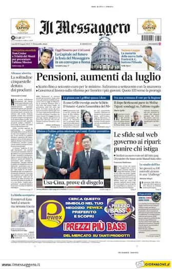 Il Messaggero: apertura con titolo "Pensioni, aumenti da luglio". Scatto fino a seicento euro per le minime. Saliranno a settecento con la manovra. Governo al lavoro sulla riforma per favorire i più giovani. Quota 103 verso la proroga