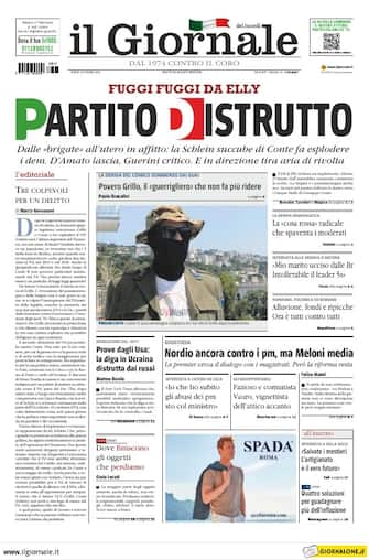 Il Giornale: apertura con titolo "Partito Distrutto". Dalle brigate all'utero in affitto: la Schlein succube di Conte fa esplodere i dem. D'Amato lascia, Guerini critico. E in direzione tira aria di rivolta