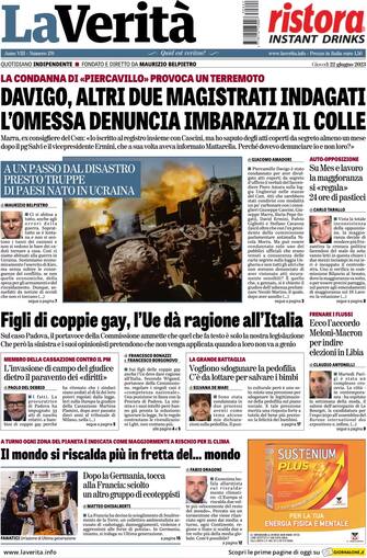 La Verità: apertura con titolo "Davigo, altri due magistrati indagati. L'omessa denuncia imbarazza il Colle"