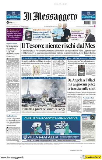 Il Messaggero: apertura con titolo "Il Tesoro: niente rischi dal Mes". Il ministero al Parlamento: nessuna criticità in caso di ratifica. Fdi e Lega frenano