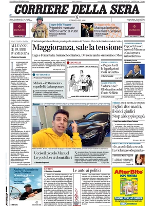 Corriere della Sera apre con "Maggioranza, sale la tensione". "L'inchiesta per falso in bilancio, pressing sulla ministra del Turismo. Lei: 'Se lo chiedono vado in aula'"