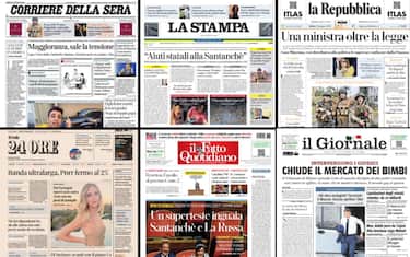 Due i temi principali sulle prime pagine dei quotidiani di oggi: l'inchiesta per falso in bilancio che ha coinvolto la ministra del Turismo Daniela Santanchè e la decisione del Tribunale di Milano per l'annullamento dell'atto di nascita di un bimbo con due padri concepito con l'utero in affitto