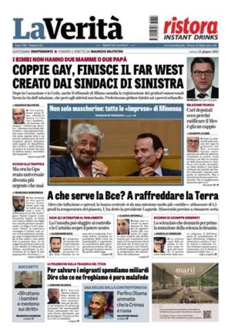 Anche La Verità apre sulla decisione del Trubunale di Milano: "Coppie gay, finisce il far west creato dai sindaci di sinistra"
