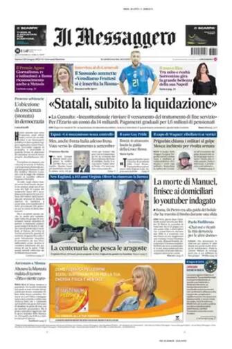 Il Messaggero apre sulla decisione della Consulta per cui è "incostituzionale rinviare il versamento del trattamento di fine servizio": "Statali, subito la liquidazione"
