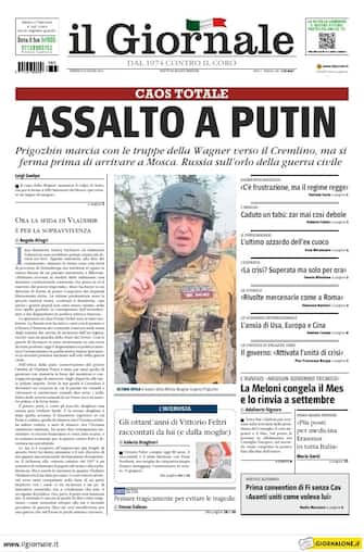 Il Giornale: apertura con titolo "Assalto a Putin". Prigozhin marcia con le truppe della Wagner verso il Cremlino, ma si ferma prima di arrivare a Mosca. Russia sull'orlo di una guerra civile