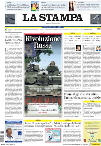 La Stampa: apertura con titolo "La Rivoluzione Russa" dedicato all'avanzata (poi c'è stato il dietrofront) di Prigozhin verso Mosca