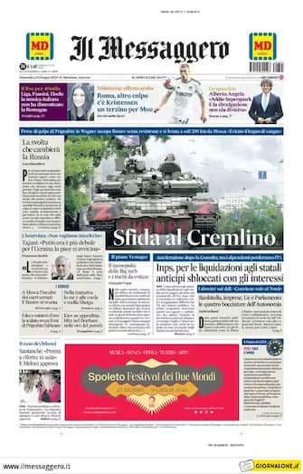 Il Messaggero: apertura con titolo "Sfida al Cremlino". Prove di golpe di Prigozhin: la Wagner occupa Rostov senza resistenze e si ferma a 200 chilometri da Mosca: "Evitato il bagno di sangue"