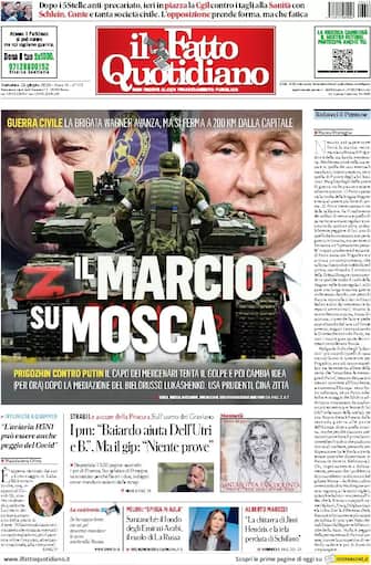 Il Fatto Quotidiano: apertura con titolo "Il marcio su Mosca". La Brigata Wagner avanza, ma si ferma a 200 chilometri dalla Capitale