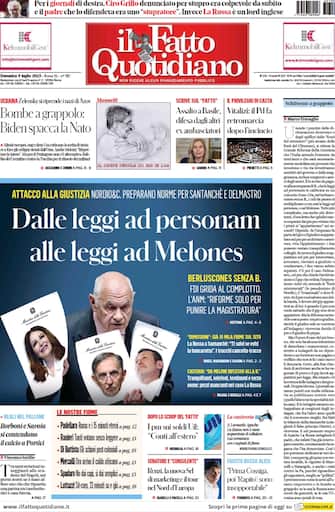 Il Fatto Quotidiano: apertura con titolo "Dalle leggi ad personam alle leggi ad Melones". Attacco alla giustizia: Nordio&C. preparano norme per Santanché e Delmastro