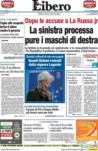 Libero: apertura con titolo "La sinistra processa pure i maschi di destra". La Schlein se la prende col patriarcato e la mascolinità tossica. Per Repubblica il problema è l'uomo conservatore. E Gad Lerner...