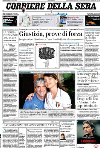 Corriere della Sera: apertura con titolo "Giustizia, prove di forza". I magistrati: noi difendiamo la Carta. Fratelli d'Italia: riforma necessaria