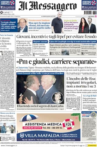 Il Messaggero: apertura con titolo "Pm e giudici, carriere separate". Tajani: "Nessuna vendetta, ma la riforma della giustizia era il sogno di Berlusconi". A Palazzo Chigi sorpresa per l'attacco dell'Anm. La Lega non vuole la guerra con le toghe