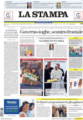La Stampa: apertura con titolo "Governo-toghe, scontro frontale". I magistrati contro Palazzo Chigi: "Attacco violentissimo, ci delegittima". Foti: "Sono loro a cercare la lite"