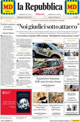 La Repubblica: apertura con titolo "Noi giudici sotto attacco". Dura replica dell'Anm: "Questo scontro lo subiamo, da Palazzo Chigi accuse pesanti che delegittimano la magistratura"