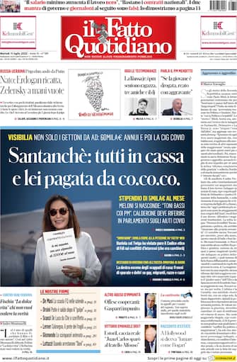 Il Fatto Quotidiano: apertura con titolo "Santanché, tutti in cassa e lei pagata da co.co.co". Non solo i gettoni da ad: 60mila euro annui e poi la Cig Covid
