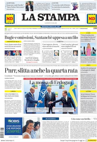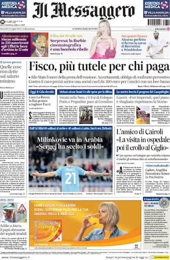 Diversi i temi sulle prime pagine dei giornali. C'è una svolta nella Nato: Erdogan apre alla Svezia. Si parla anche della strage del clima con 61mila morti in Europa. Sui quotidiani sportivi impazza il calciomercato: Milinkovic-Savic va in Arabia, Lukaku verso l'Inter