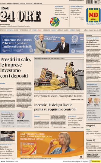 Il Sole 24 Ore: apertura con titolo "Prestiti in calo, le imprese investono con i depositi". Spazio a "Incentivi, la delega fiscale punta su requisiti e controlli"