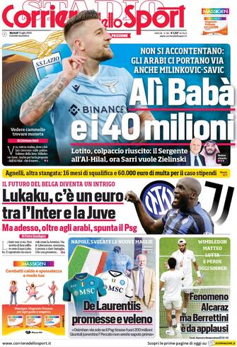 Corriere dello Sport: apertura con titolo "Alì Babà e i 40 milioni". Non si accontentano: gli arabi ci portano via anche Milinkovic-Savic