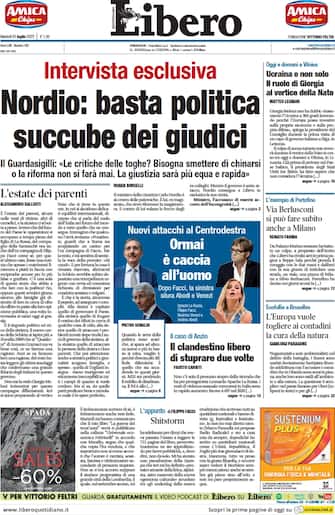 Libero: apertura con titolo "Nordio: basta politica succube dei giudici". Il Guardasigilli: "Le critiche delle toghe? Bisogna smettere di chinarsi o la riforma non si farà mai"
