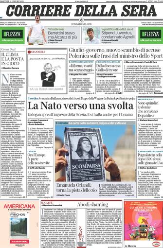 Corriere della Sera: apertura con titolo "La Nato verso una svolta". Erdogan apre all'ingresso della Svezia. E si tratta anche per l'Ucraina