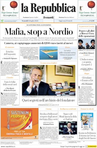 La Repubblica: apertura con titolo "Mafia, stop a Nordio". Il sottosegretario Mantovano sconfessa il Guardasigilli: "Riscrivere il reato di concorso esterno non è una priorità"