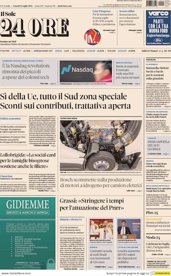 Il Sole 24 Ore: apertura con titolo "Sì della Ue, tutto il Sud zona speciale. Sconti sui contributi, trattativa aperta"