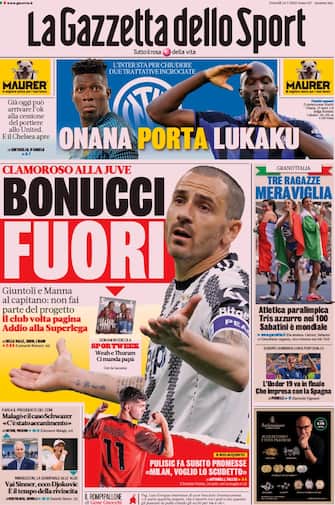 La Gazzetta dello Sport: apertura con titolo "Clamoroso alla Juve: Bonucci fuori". Giuntoli e Manna al capitano: non fai parte del progetto. Il club volta pagina. Addio alla Superlega