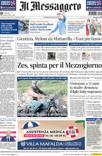 Il Messaggero: apertura con titolo "Giustizia, Meloni da Mattarella: toni più bassi". Il premier al Colle. Vertice anche sui ritardi del Pnrr