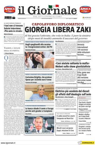 Il Giornale: apertura con titolo "Giorgia libera Zaki". Al Sisi grazia l'attivista, che vola in Italia. E pure la sinistra (dopo mesi di insulti) ammette il successo del governo